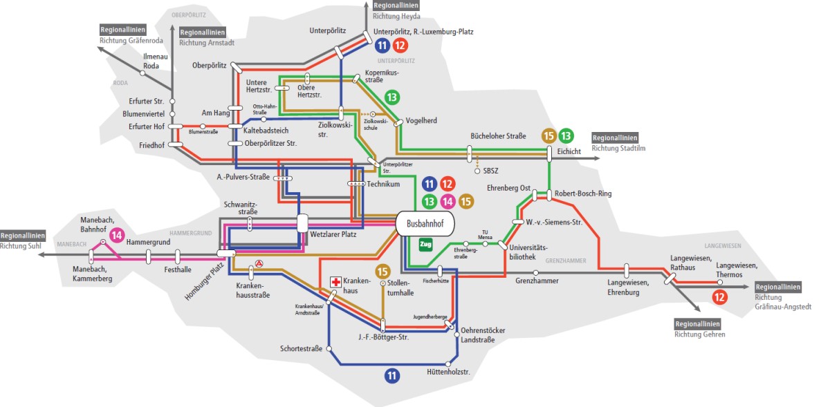 - Die Verbindung zwischen TU Ilmenau, Pörlitzer Höhe und Hauptbahnhof Ilmenau wird optimiert.