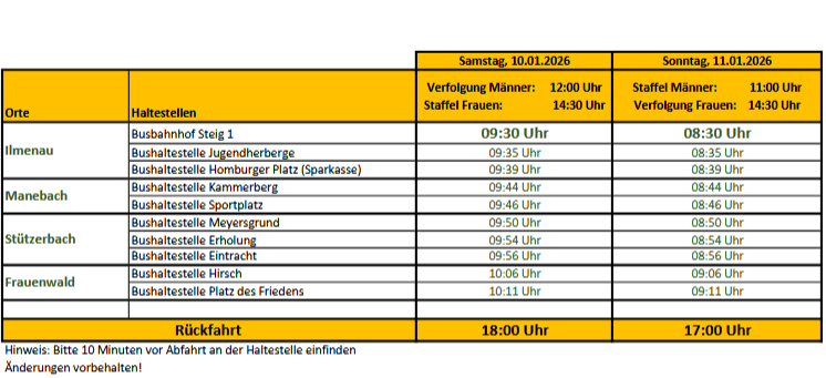 Fahrplan Busshuttle BMW IBU BIATHLON WELTCUP OBERHOF 2026